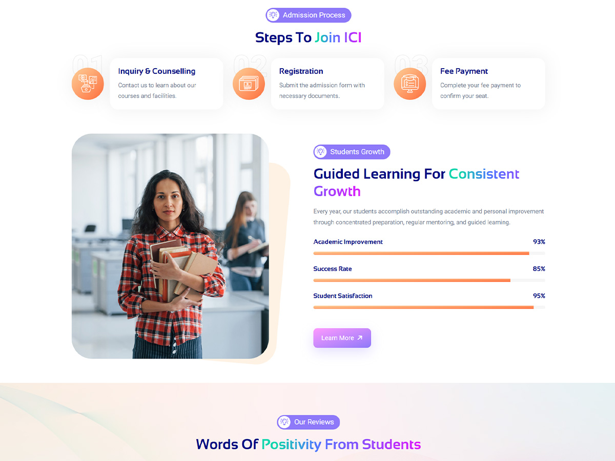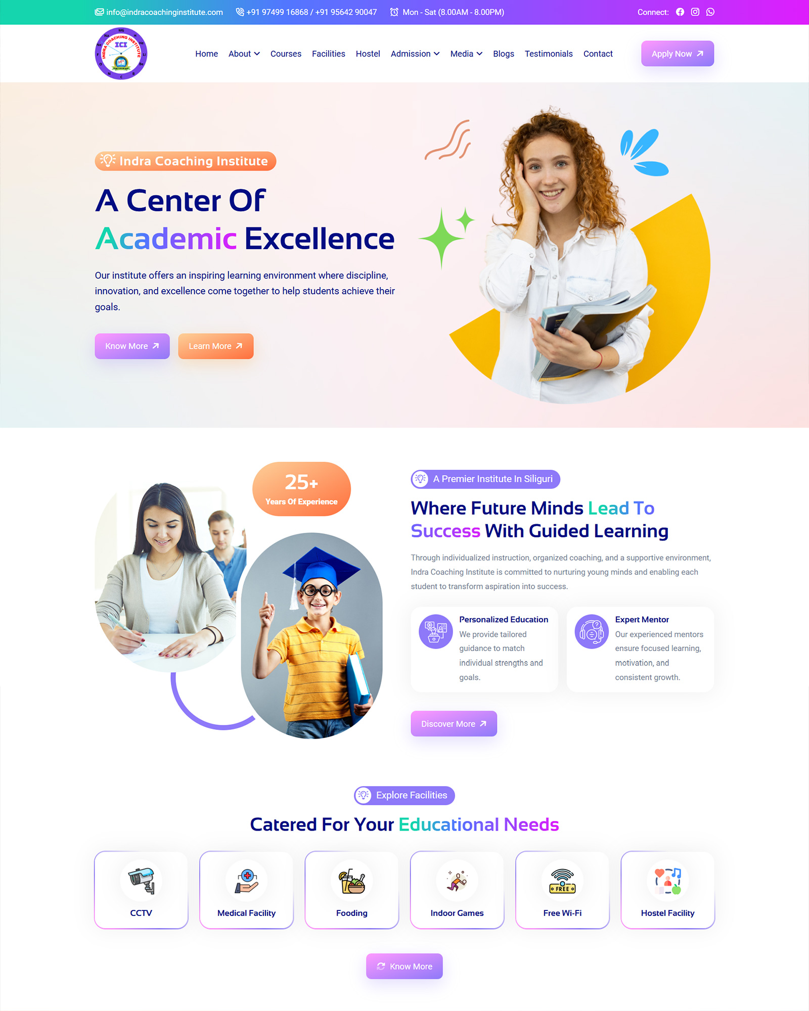 The goal of Indra Coaching Institute's was to develop a transparent and reliable digital platform that promotes student enrolment and parent involvement. The client wanted a website that would emphasize teaching skills, effectively describe courses, and questions easier for students of all academic levels. They also needed a simple and dynamic enquiry form which can help students to apply for the courses from any device.